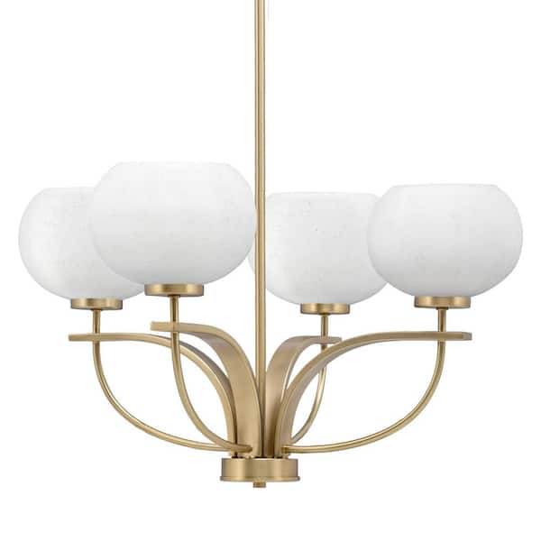 Olympia 4-Light Uplight Chandelier New Age Brass Finish 7 in. White Muslin Glass