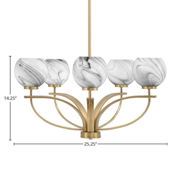 Olympia 5-Light New Age Brass Round Chandelier with 5.75 in. Onyx Swirl Glass Shades, No bulbs included