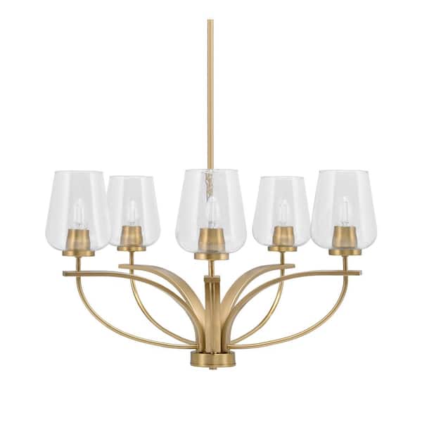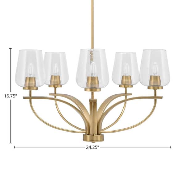 Olympia 5-Light New Age Brass Round Chandelier with 5 in. Clear Bubble Glass Shades, No bulbs included