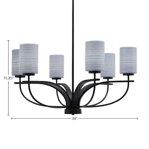 Olympia 6-Light Matte Black Round Chandelier with 4 in. Gray Matrix Glass Shades, No bulbs included