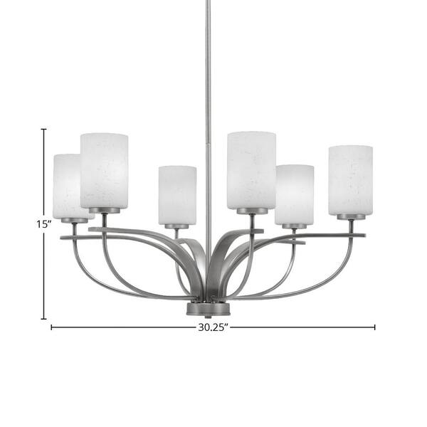 Olympia 6 Light, Uplight, Chandelier, Graphite Finish, 4 in. White Muslin Glass