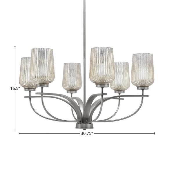 Olympia 6 Light, Uplight, Chandelier, Graphite Finish, 5 in. Silver Textured Glass