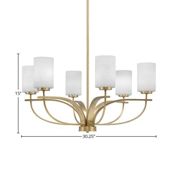 Olympia 6 Light, Uplight, Chandelier, New Age Brass Finish, 4 in. White Muslin Glass