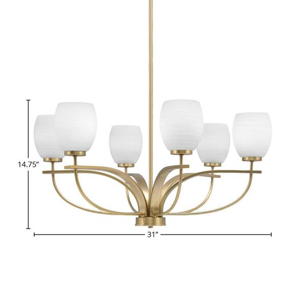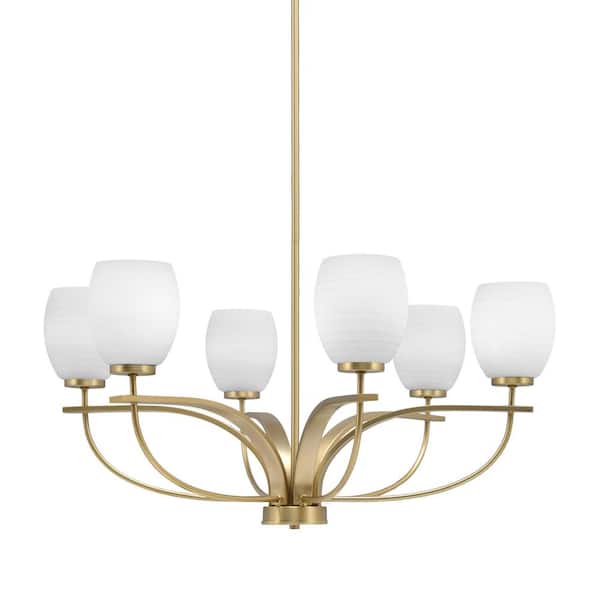 Olympia 6 Light, Uplight, Chandelier, New Age Brass Finish, 5 in. White Linen Glass