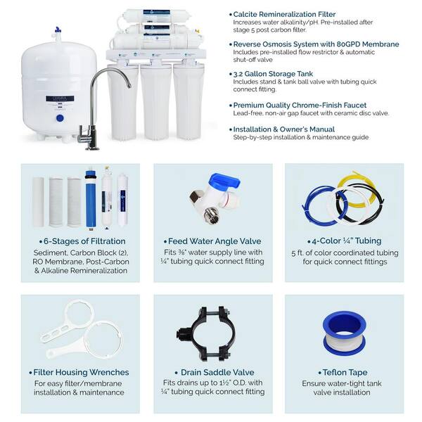Alkaline Remineralization 6-Stage Under-Sink Reverse Osmosis Water Filtration System with 80 GPD Membrane
