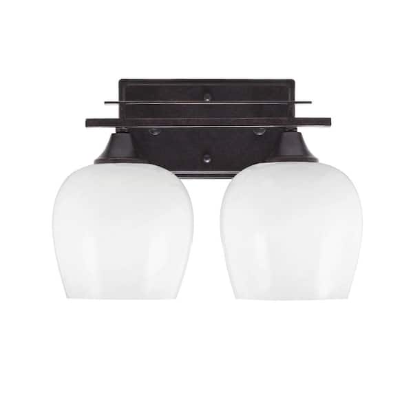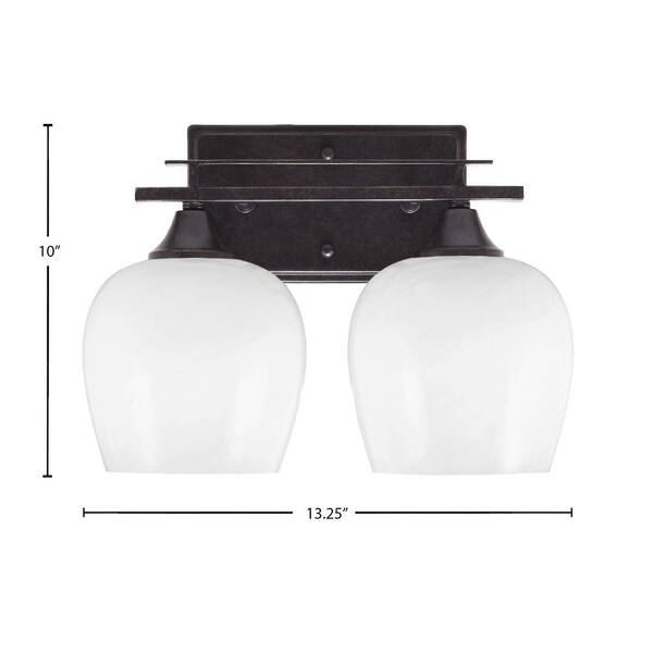 Ontario 13.25 in. 2-Light Vanity Light Dark Granite White Marble Glass Shade