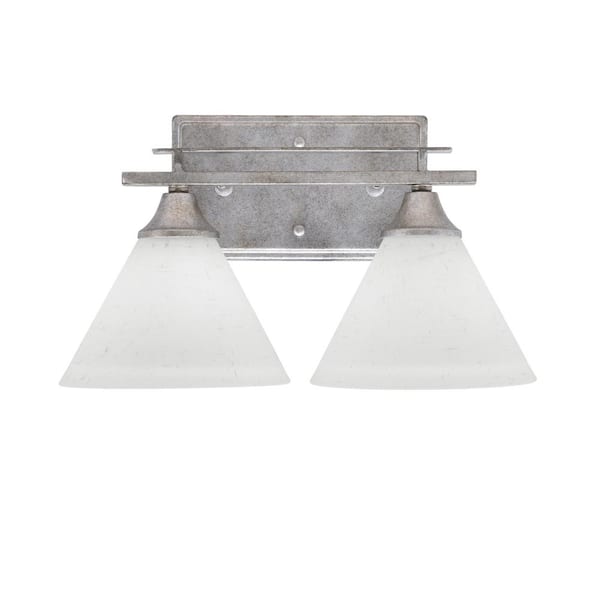 Ontario 14 in. 2-Light Vanity Light Aged Silver White Muslin Glass Shade
