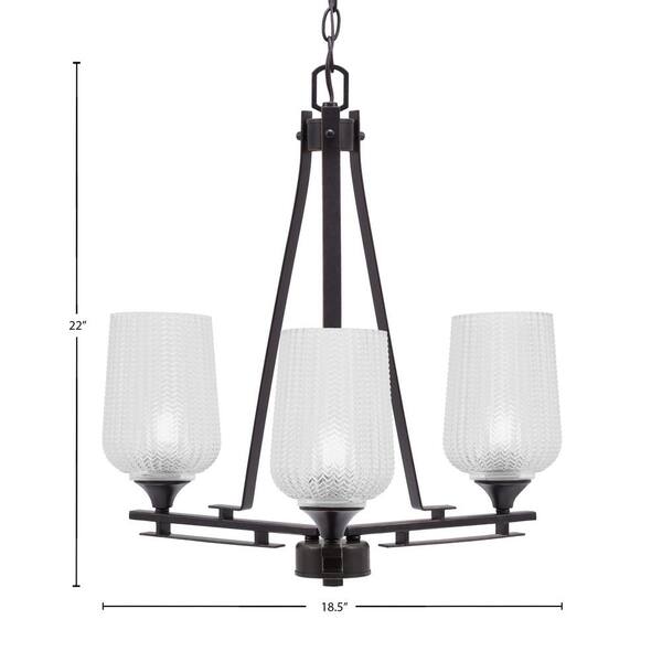 Ontario 18.5 in. 3-Light Dark Granite Geometric Chandelier for Dinning Room with Clear Textured Shade No Bulbs Included