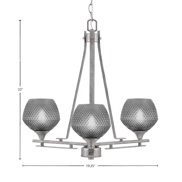 Ontario 19.25 in. 3-Light Aged Silver Geometric Chandelier for Dinning Room with Smoke Shades, No Bulbs Included