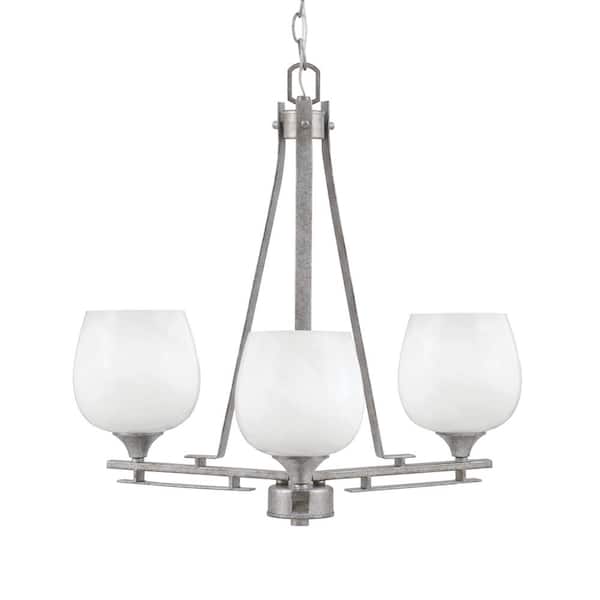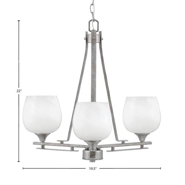 Ontario 19.5 in. 3-Light Aged Silver Geometric Chandelier for Dinning Room with White Marble Shades, No Bulbs Included