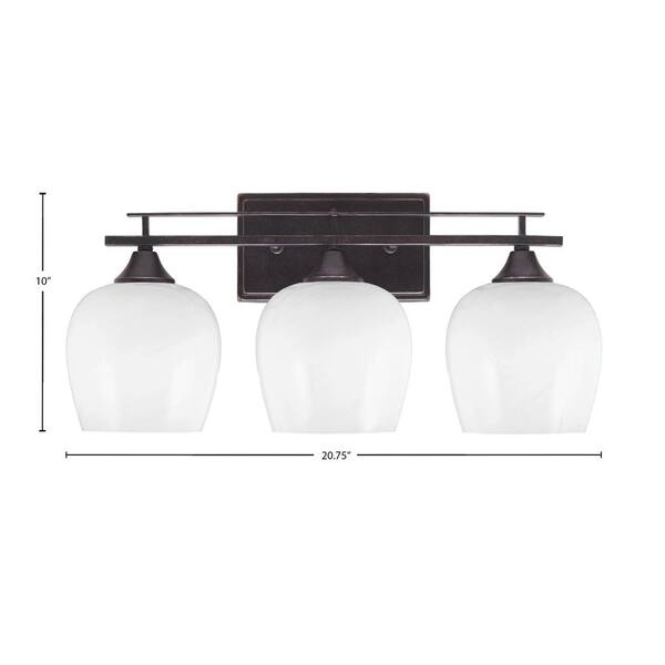 Ontario 20.75 in. 3-Light Vanity Light Dark Granite White Marble Glass Shade