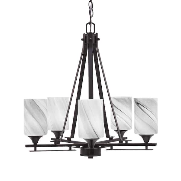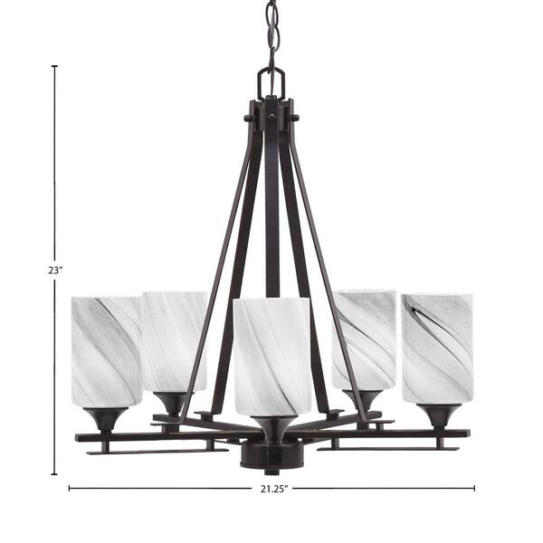 Ontario 21.25 in. 5-Light Dark Granite Geometric Chandelier for Dinning Room with Onyx Swirl Shades No Bulbs Included