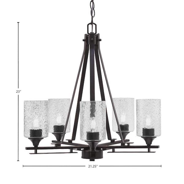 Ontario 21.25 in. 5-Light Dark Granite Geometric Chandelier for Dinning Room with Smoke Bubble Shades No Bulbs Included