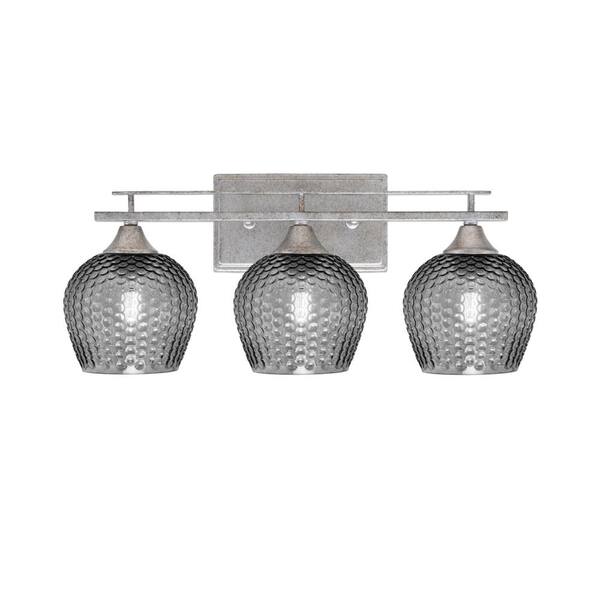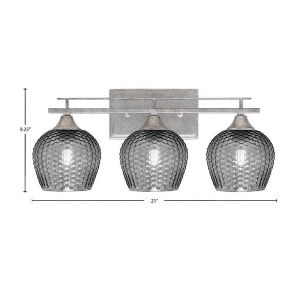 Ontario 21 in. 3-Light Vanity Light Aged Silver Smoke Textured Glass Shade