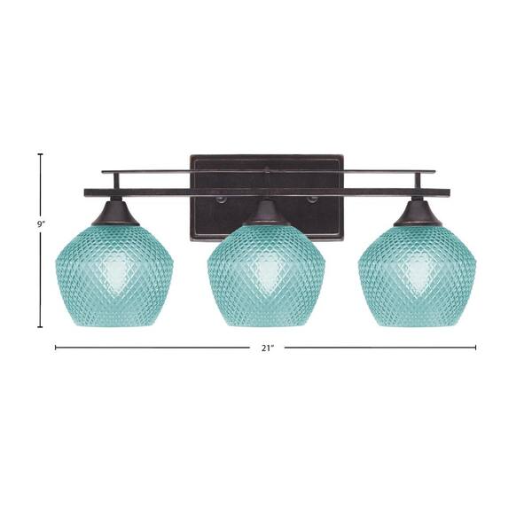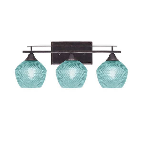 Ontario 21 in. 3-Light Vanity Light Dark Granite Turquoise Textured Glass Shade