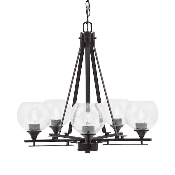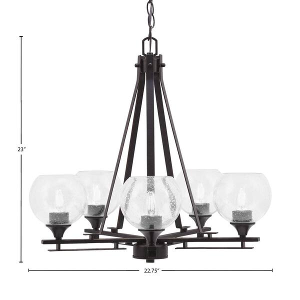 Ontario 22.75 in. 5-Light Dark Granite Geometric Chandelier for Dinning Room with Clear Bubble Shades No Bulbs Included