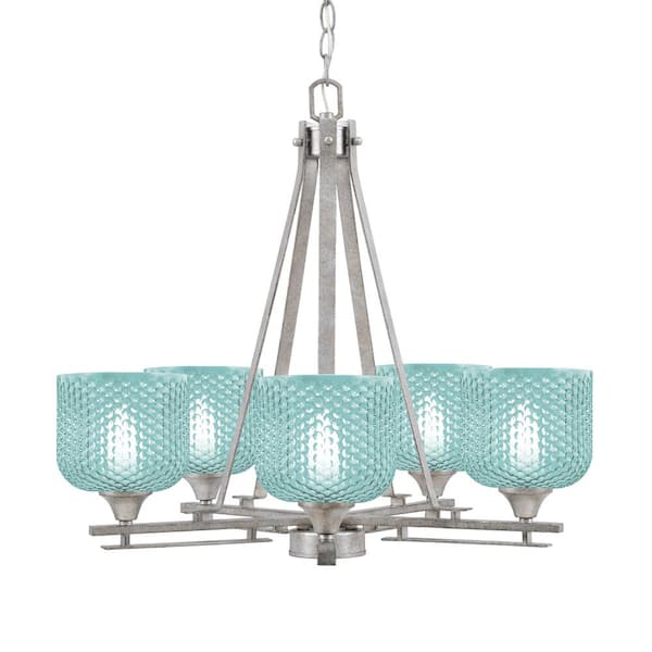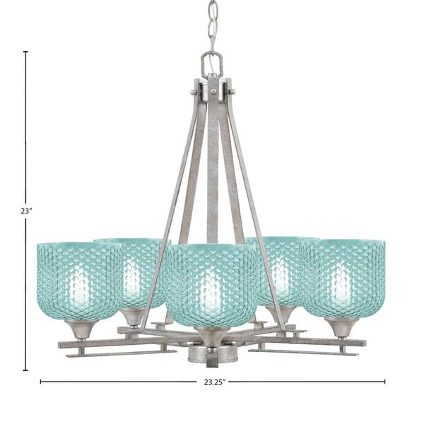 Ontario 23.25 in. 5-Light Aged Silver Geometric Chandelier for Dinning Room with Turquoise Shades No Bulbs Included