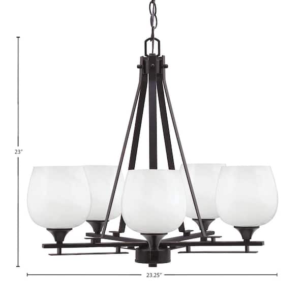 Ontario 23.25 in. 5-Light Dark Granite Geometric Chandelier for Dinning Room with White Marble Shades No Bulbs Included