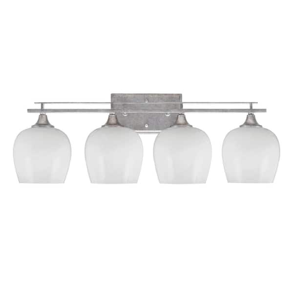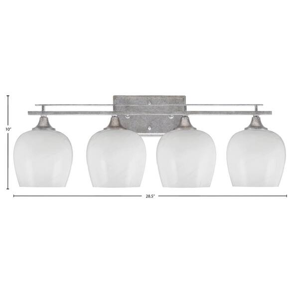 Ontario 28.5 in. 4-Light Vanity Light Aged Silver White Marble Glass Shades