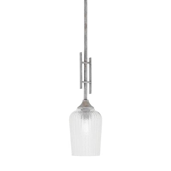 Ontario 60-Watt, 1-Light Aged Silver Stem Hung Mini Pendant Light with Clear Textured Glass Shade and No Bulb Included