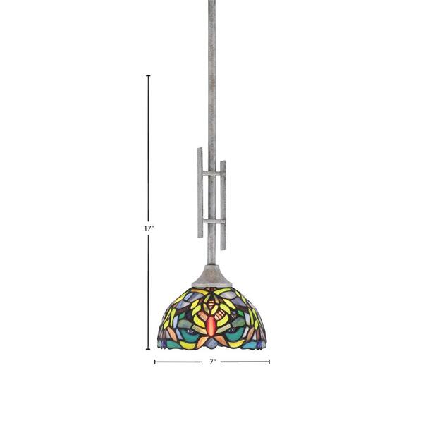 Ontario 60-Watt, 1-Light Aged Silver Stem Hung Mini Pendant Light with Kaleidoscope Art Glass Shade and No Bulb Included