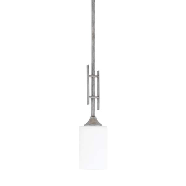 Ontario 60-Watt, 1-Light Aged Silver Stem Hung Mini Pendant Light with White Muslin Glass Shade and No Bulb Included