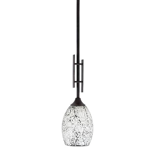Ontario 60-Watt, 1-Light Dark Granite Stem Hung Mini Pendant Light with Black Fusion Glass Shade and No Bulb Included