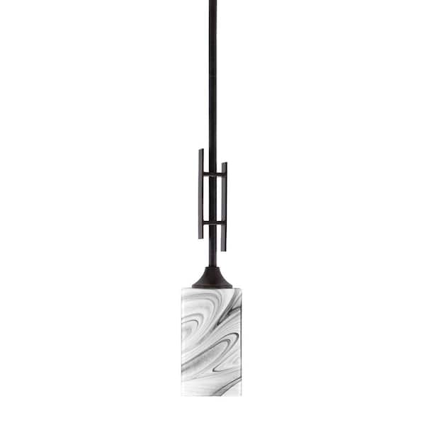 Ontario 60-Watt, 1-Light Dark Granite Stem Hung Mini Pendant Light with Onyx Swirl Glass Shade and No Bulb Included