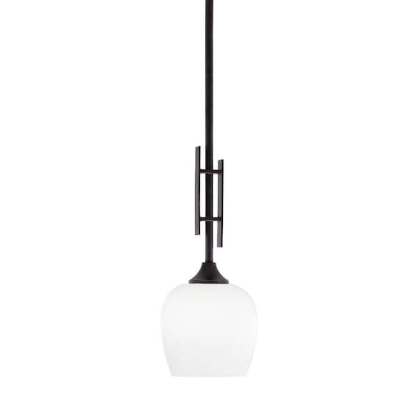 Ontario 60-Watt, 1-Light Dark Granite Stem Hung Mini Pendant Light with White Marble Glass Shade and No Bulb Included