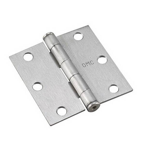 3 in. x 3 in. Brushed Chrome Full Mortise Butt Hinge with Removable Pin (2-Pack)