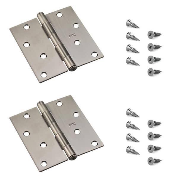 4 in. x 4 in. Antique Nickel Full Mortise Butt Hinge with Removable Pin (2-Pack)