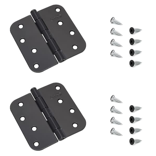 4 in. x 4 in. Black Full Mortise Butt Hinge (2-Pack)