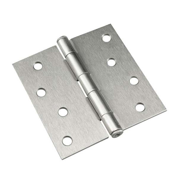 4 in. x 4 in. Brushed Nickel Full Mortise Butt Hinge with Removable Pin (2-Pack)