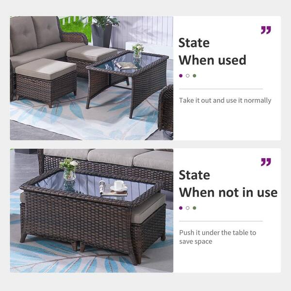 ArcoBay 2-Piece Brown Wicker Outdoor Loveseats Patio Conversation Set with Gray Cushions and Coffee Table