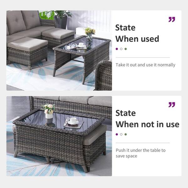 ArcoBay 2-Piece Gray Wicker Outdoor 3-Seat Couch Sofa Patio Conversation Set with Gray Cushions and Coffee Table