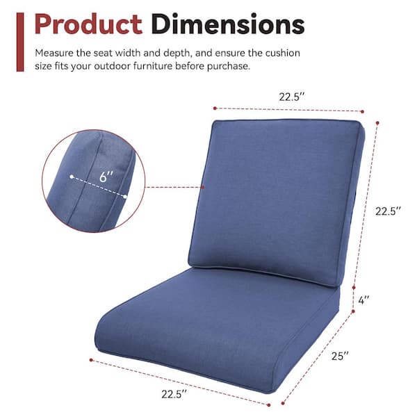 ArcoBay 22.5 in. x 25 in. x 4 in. 2-Piece Deep Seating Outdoor Lounge Chair Replacement Cushion Set in Blue