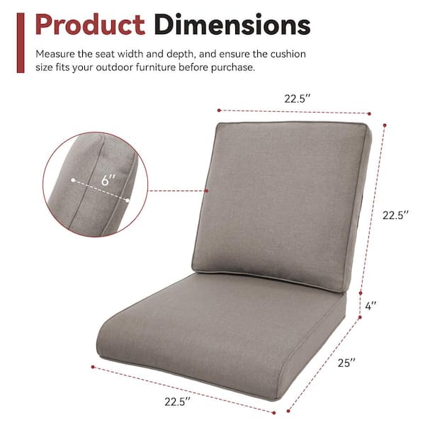ArcoBay 22.5 in. x 25 in. x 4 in. 4-Piece Deep Seating Outdoor Lounge Chair Replacement Cushion Set in Gray