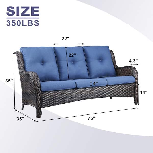 ArcoBay 5-Piece Brown Wicker Outdoor 3-Seat Sectional Couch Sofa Patio Conversation Set with Blue Cushions and Ottomans