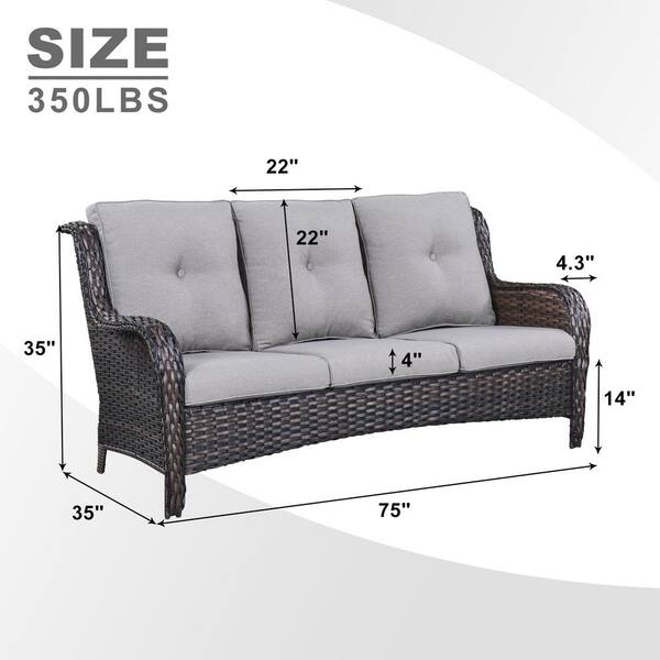 ArcoBay 5-Piece Brown Wicker Outdoor 3-Seat Sectional Couch Sofa Patio Conversation Set with Gray Cushions and Ottomans
