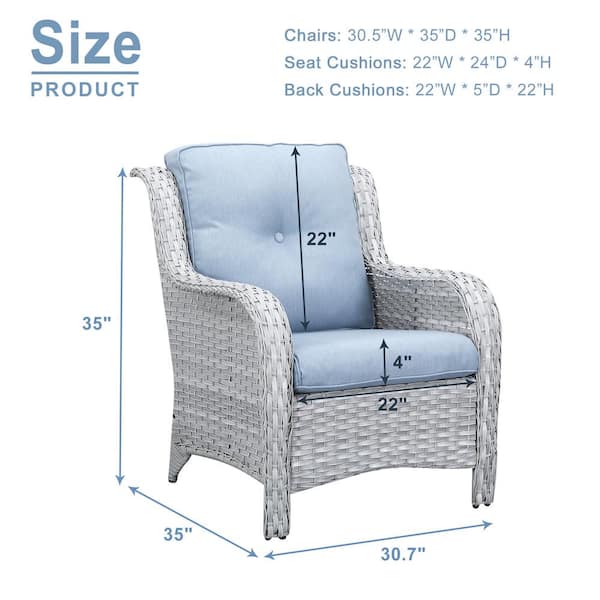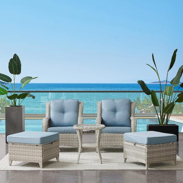 ArcoBay 5-Piece Light Beige Wicker Outdoor Lounge Chairs Patio Conversation Set with Baby Blue Cushions and Ottomans