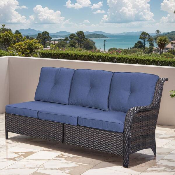 ArcoBay Brown Wicker Left Arm 3-Seat Outdoor Sectional Sofa Patio Sofa with Navy Blue Cushion