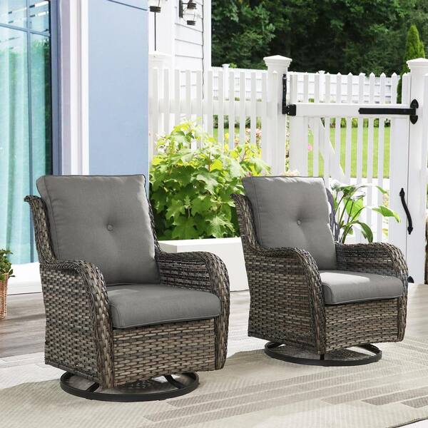 ArcoBay Metal and Gray Wicker Outdoor Rocking Chair Patio Swivel Chairs with Olefin Gray Cushions (2-Pack)