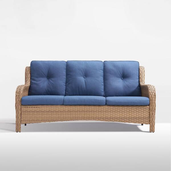 ArcoBay Metal and Yellow Wicker Outdoor 3-Seat Sectional Couch Sofa with Olefin Navy Blue Cushions