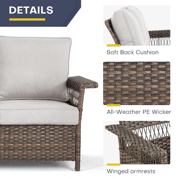 Brown 4-Piece Wicker Outdoor Patio Rectangular Fire Pit Conversation Set, Sofa Seating Set with Beige Cushions