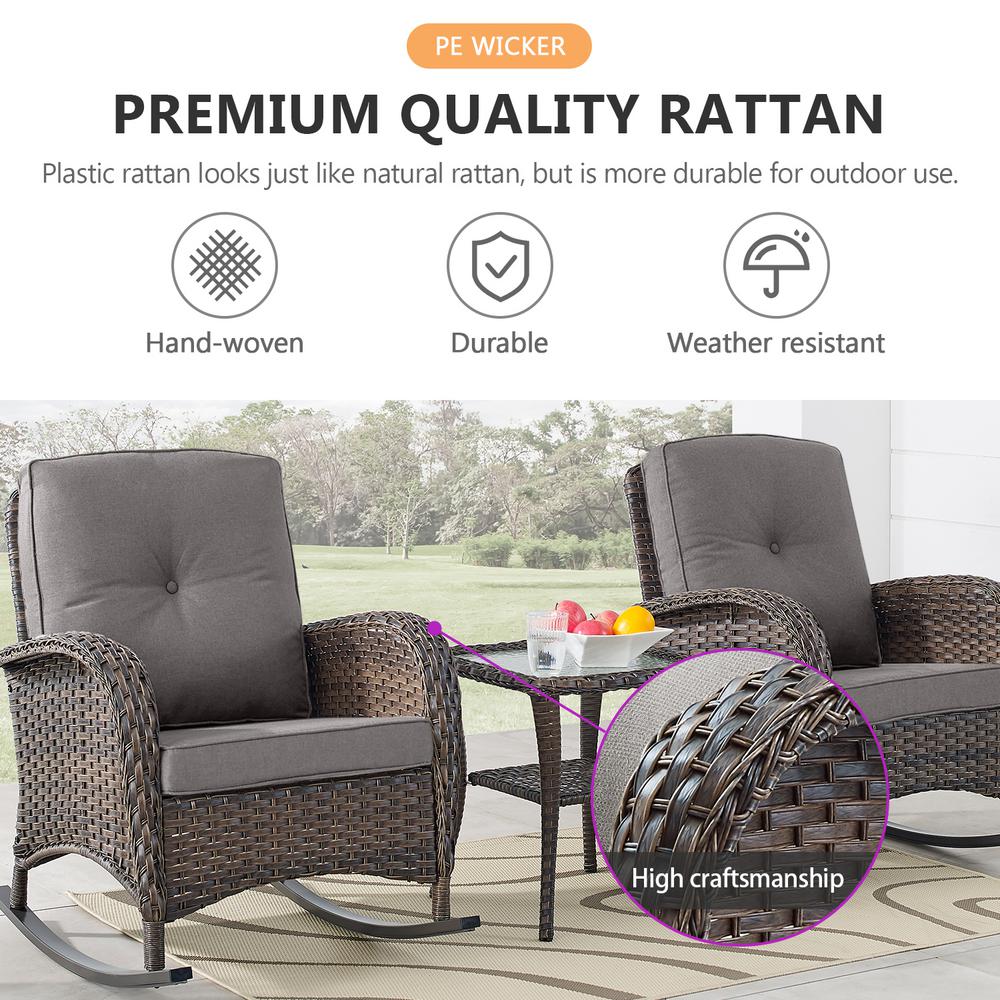 Brown 6-Piece Wicker Outdoor Rocking Chairs Patio Conversation Set with Gray Cushions and Side Tables