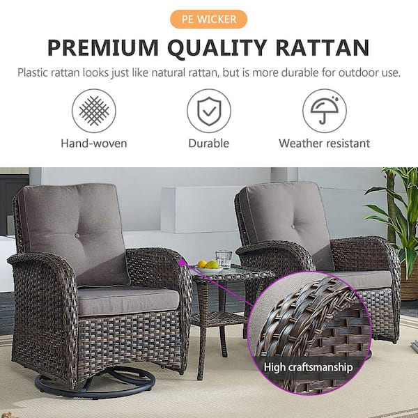 Brown 8-Piece Wicker Patio Conversation Set with Swivel Rockers, Outdoor Loveseat Seating Set with Gray Cushions