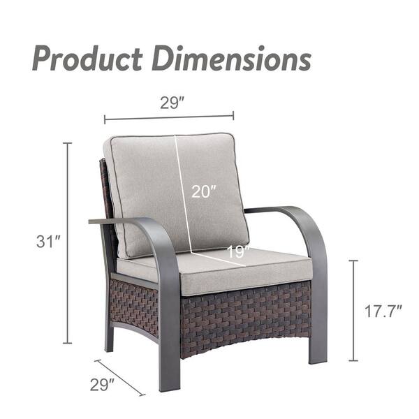 Brown Metal Armrests Wicker Outdoor Lounge Chair, Rattan Armchair with Beige Cushions for Patio Porch (4-Pack)