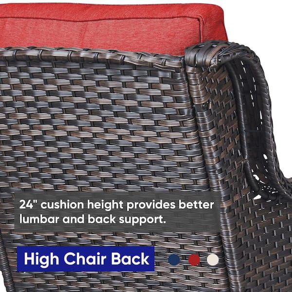 Brown Wicker Outdoor Couch, 3-Seat Patio Sofa with Deep Seating and Red Cushions for Porch Deck Balcony