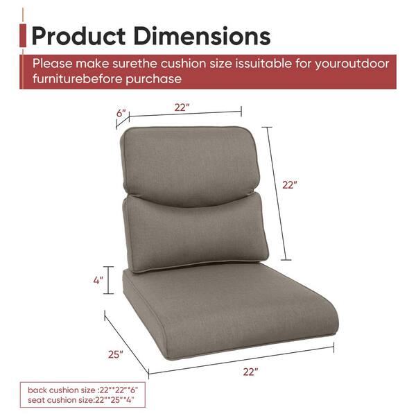 Crescent 22 in. x 25 in. x 4 in. 10-Piece Deep Seating Outdoor Lounge Chair Replacement Cushion Set in Gray