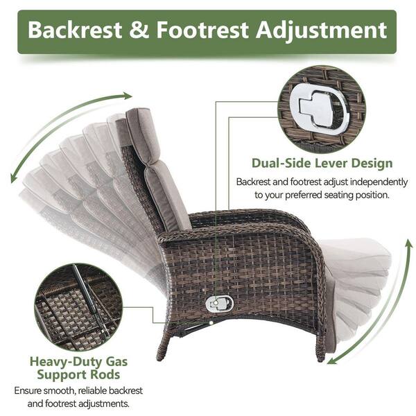 PlainCurve 4-Piece Brown Wicker Outdoor Patio Adjustable Recliner Chair with Gray Cushions